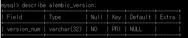 2. 만약 alembic_version테이블 자체가 없으면 sql 쿼리를 통해 테이블 생성을 함